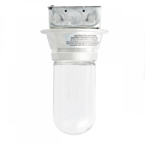 Easy Mount Canopy Lighting Fixture with Tempered Coated Globe for Commercial Kitchen Exhaust Hoods. Furnished with Thermal and Shock Resistant Tempered Glass Globe.
